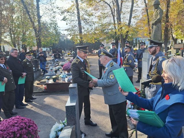 11.11. - Deň vojnových veteránov Pri príležitosti 107. výročia ukončenia 1. svetovej vojny si dňa 11. novembra na Starom cintoríne v Topoľčanoch tichou pietou pripomenuli príslušníci 1. mechanizovanej brigády, na čele s veliteľom brigády brigádnym generálom Štefanom Acsaiom, všetkých hrdinov padlých v I. svetovej vojne. Tento deň patrí všetkým, ktorí slúžili vlasti s nasadením svojho vlastného života. Na ich počesť bolo presne o 11 hodine a 11 minúte, teda v čase podpísania mieru, symbolicky odpálených 11 slávnostných sálv. Bezprostredne po ich odznení vzdali všetci prítomní úctu minútou ticha, po ktorej už nasledoval pietny akt kladenia vencov a modlitba. Spomienkového aktu sa okrem vojakov z Veliteľstva 1.mechanizovanje brigády, 103.roty podpory velenia a 14. práporu logistiky, osobne zúčastnili aj zástupca primátorky mesta Topoľčany Juraj Želiska, prednostka Okresného úradu Topoľčany Jana Malinková, členovia Slovenského zväzu protifašistických bojovníkov, členovia Klubu Zväzu vojakov SR v Topoľčanoch na čele s predsedom klubu podplukovníkom v.v. Jánom Poliačikom, ako aj žiaci a pedagógovia stredných škôl z Topoľčian či mnoho ďalších. Na záver spomienkového podujatia odznela báseň Na flámskych poliach, ktorá sa stala symbolom nového života. „Život ľudí, ktorí položili svoje životy či už v ozbrojených konfliktoch alebo mierových operáciách po celom svete bol krátky, ale zároveň bohatý. Bohatým preto, lebo bol naplnený úsilím, sebazaprením a obetavosťou v prospech iných. Patrí im za to úcta a vďaka nás všetkých!“